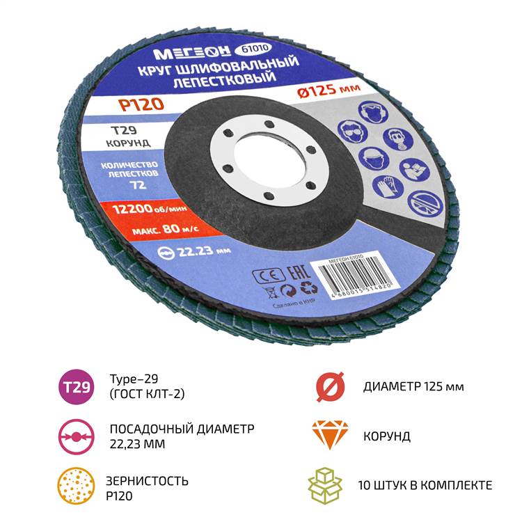 1. Круг шлифовальный лепестковый МЕГЕОН 61010 - 10 шт.