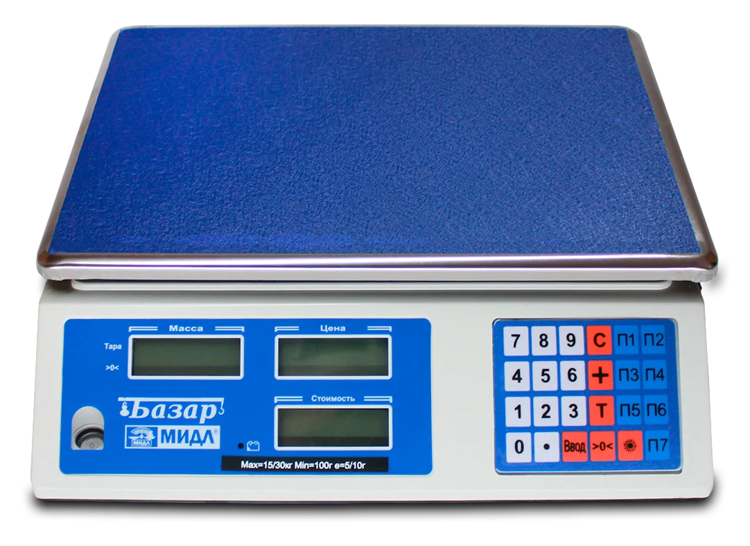 Количество разрядов индикации: масса - 5, цена - 5, стоимость - 6.